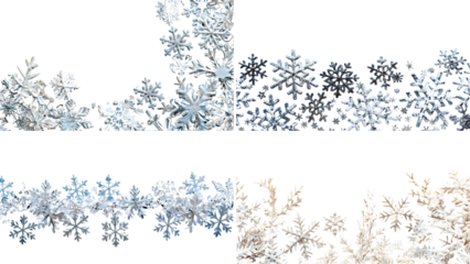 A Winter themed border with snowflakes isolated on transparent background, detailed photo, png