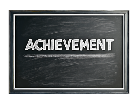 Chalkboard with bold achievement text, black framed isolated against a white or transparent background, achievement message on chalkboard png image