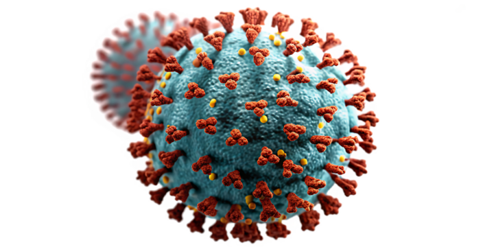 A 3D rendered image of a red virus cell against a transparent background, highlighting its distinct spiky surface and the microscopic threat it represents