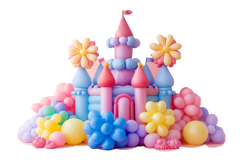 inflatable pink castle made of balloons. png object isolated on transparent background, mockup, design, template, layout, sticker