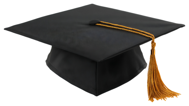 Graduate cap hat with tassel isolated in high resolution png style with clean transparent background feel, crisp cutout ideal for education designs, graduation invitations, stickers, posters.