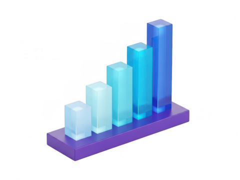 Glass bar graphs showing different growth directions on a white background used for data visualization and financial reporting
