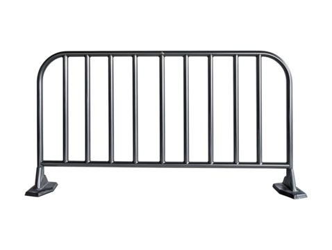 Metallic crowd control barrier with vertical bars, isolated on transparent cutout background