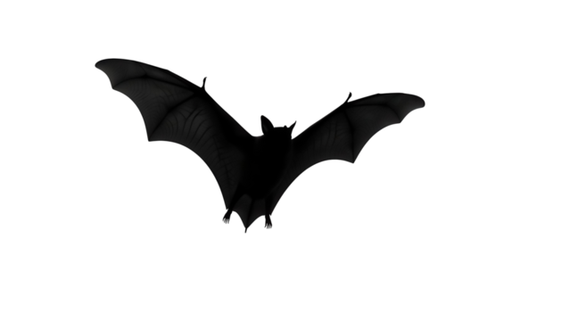 Black bat flying isolated PNG on transparent background, Halloween spooky creature for graphic design and decoration