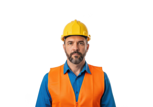 Construction worker in safety gear isolated on transparent background