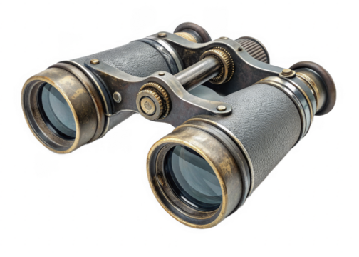 Classic vintage binoculars transparent background detailed close-up natural light high-quality image