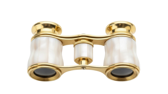 Elegant gold and mother-of-pearl opera glasses, cut out, stock png, isolated on transparent background