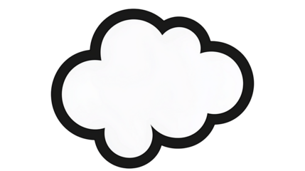 White thought bubble with black outline on transparent background