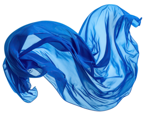 Fluid, vibrant blue fabric drapes in a dynamic swirl against a black background