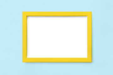 Yellow frame mockup on a sky blue background