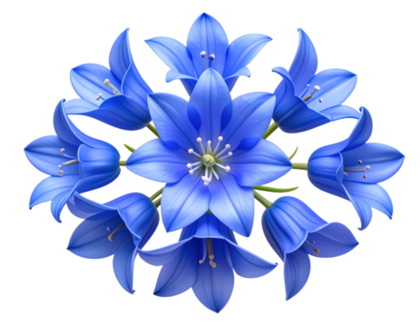 Top View Flat Lay of Multiple Flax Flowers, isolated on a transparent background.