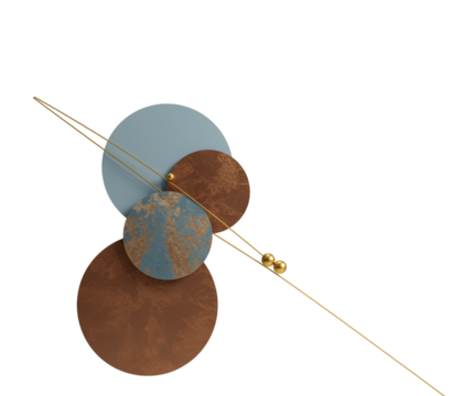 Abstract geometric circles with metallic texture and golden spheres composition transparent background