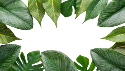 Vibrant green banana leaf with prominent veins isolated on transparent background