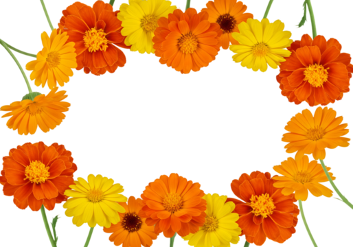 Vibrant Floral Arrangement with Marigolds on Transparent Background, Displaying Bright Orange and Yellow Blooms in a Whimsical Style