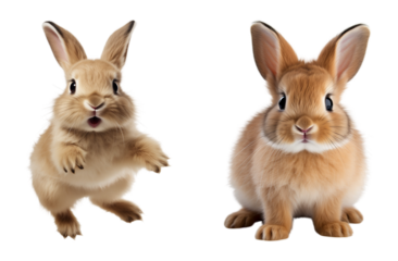 Cute easter bunny isolated on transparent background smiling and ready for easter celebrations