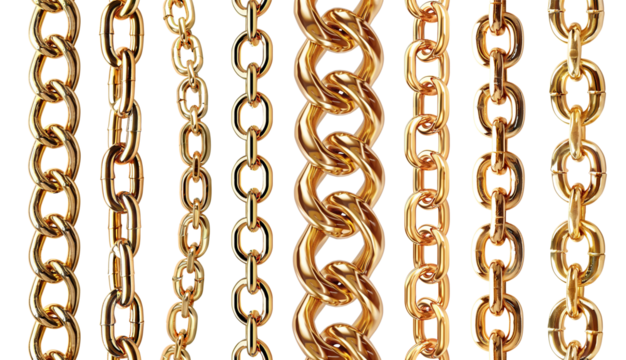 Golden chain border Seamless luxury chains of dif isolated on white or transparent background