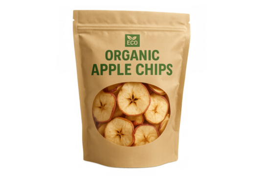 Organic apple chips in stand up pouch packaging