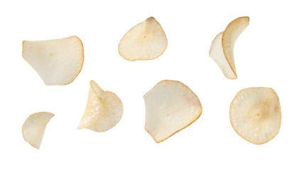 Crispy potato chips falling kitchen food isolated on transparent background
