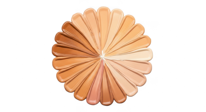 Assorted makeup foundation shades arranged in a circular pattern isolated on transparent background