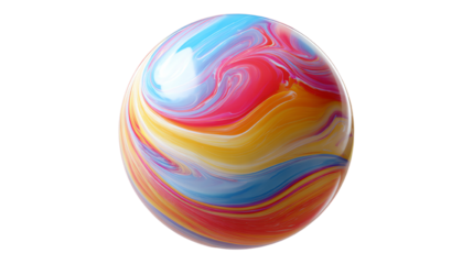 A colorful swirl marble with shades of blue, red, and yellow on a transparent background.