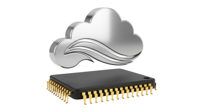 Cloud computing concept with microchip PNG isolated on transparent background, modern technology and data storage for digital business
