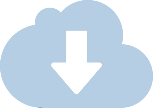 Blue cloud icon with downward arrow symbol isolated on transparent background