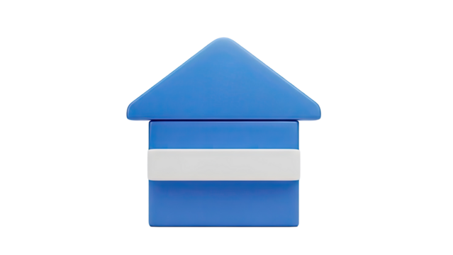 3D Blue and white house icon on transparent background