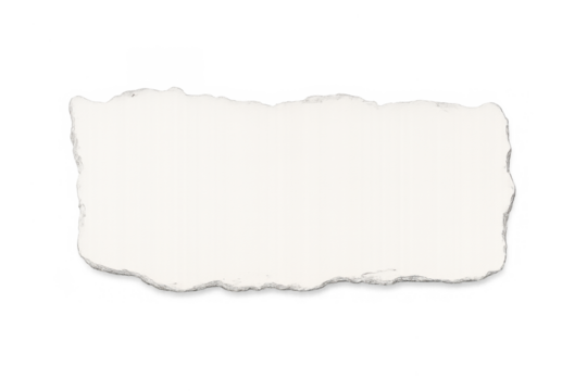 Torn paper rectangle with jagged edges offering copy space, a blank white notice area for messages, transparent background