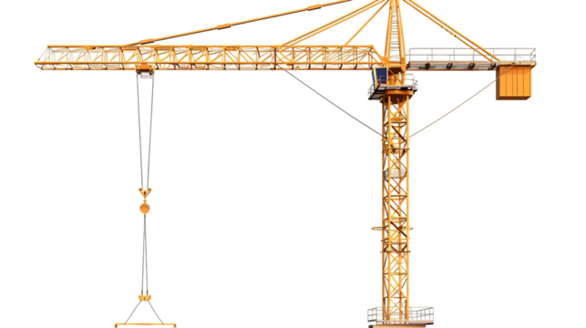 Construction crane with jib and tower mast isolated on transparent background for graphic design