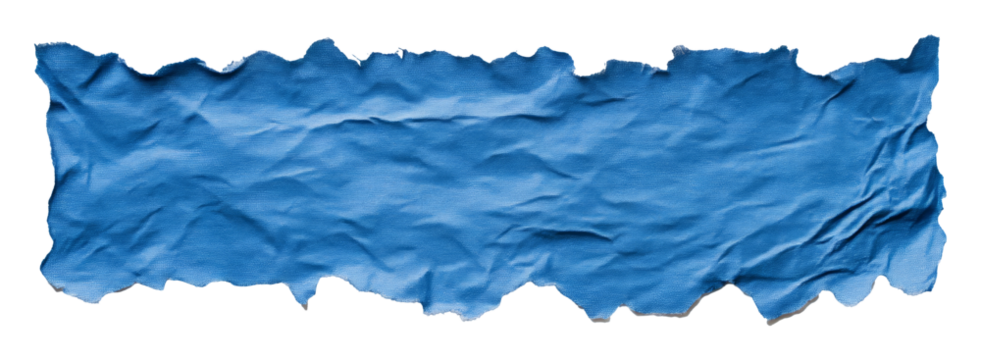 A crumpled blue paper circle isolated on a transparent background, showing texture and irregular edges, perfect for design elements or abstract concepts