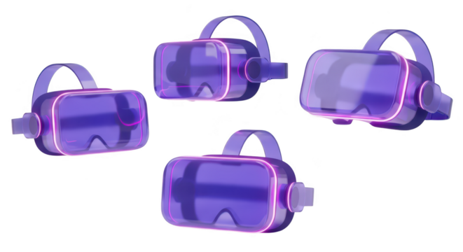 Purple VR headsets floating on a white background showcasing the technology's potential Ideal for advertising or illustrating virtual reality experiences