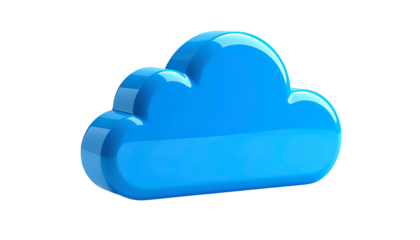 Shiny, light-blue three-dimensional cloud icon against a solid black background