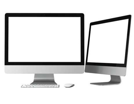 Two modern digital tablets displaying blank white screens side by side isolated on transparent background