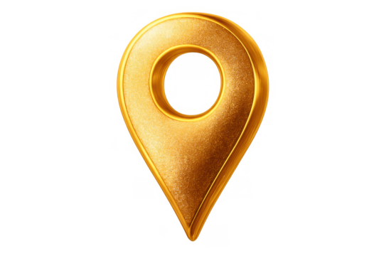 Golden 3d map marker icon locating global destination, finding a place, tracking travel applications, transparent background