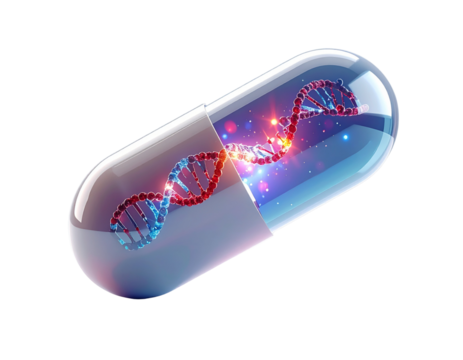Personalized Medicine Concept with DNA Strand and Capsule, isolated on transparent background