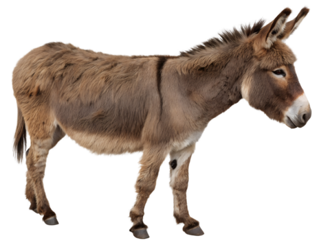 Full Body Portrait of a Donkey Isolated on transparent background cutout, PNG file, Cutout file