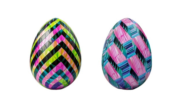 Easter eggs with colorful geometric pattern on transparent background.