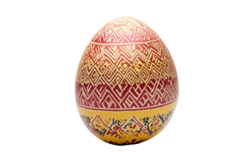 A vibrant Easter egg decorated with traditional red, green, yellow, and white floral patterns. Perfect for spring and holiday themes. background removed