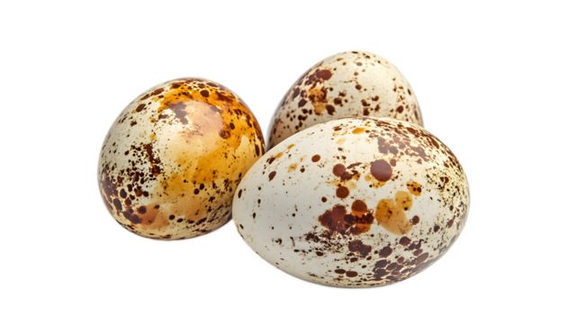 Three Decorated Easter Eggs with Various Patterns and Colors Isolated on Transparent Background