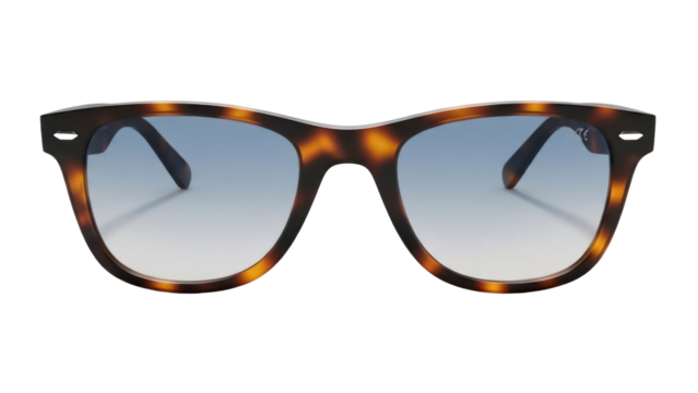 Tortoiseshell sunglasses with blue gradient lenses isolated PNG, stylish eyewear for sun protection and fashion accessory on transparent background
