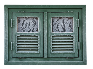 Old wooden window with open shutters isolated on transparent background. Wooden window frame isolated on white background.