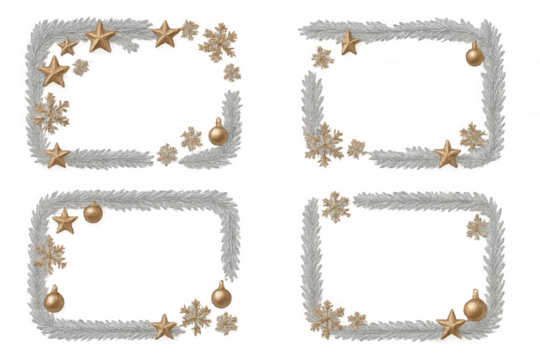 Festive christmas border with ornaments bows stars and fir branches isolated on transparent background