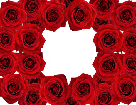 Frame of red roses surrounding a transparent background