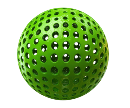 Bright green perforated sphere for creative design projects on a transparent background, cut out
