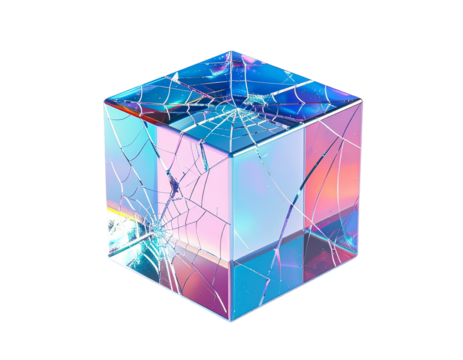 Iridescent Glass Cube with Neon Edges and Interior Space
