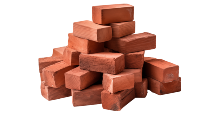 Stock photo of red clay bricks pile for construction building material isolated on black transparent backgroundisolated on transparent background