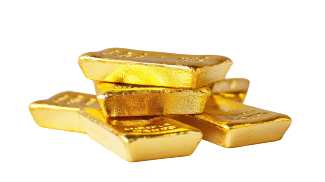 Gold bullion on a transparent background