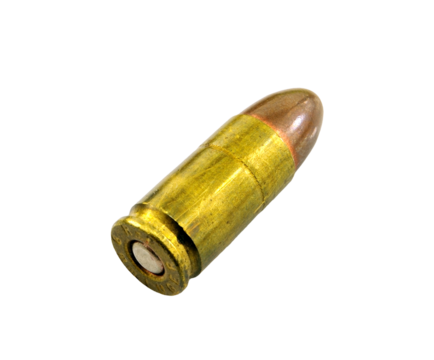 A gloved hand gripping a pistol against a stark, dark backdrop on transparent background