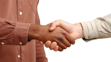 Close up of a handshake between two business people isolated on transparent background, symbolizing agreement and partnership in a professional setting