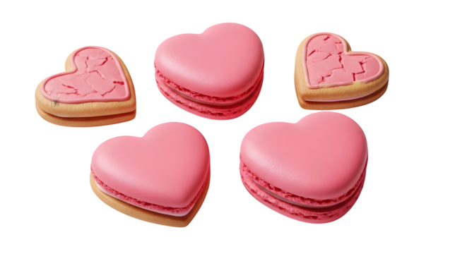 A collection of heart shaped cookies and macarons on a black background display   ai generative, transparent background, white background.
